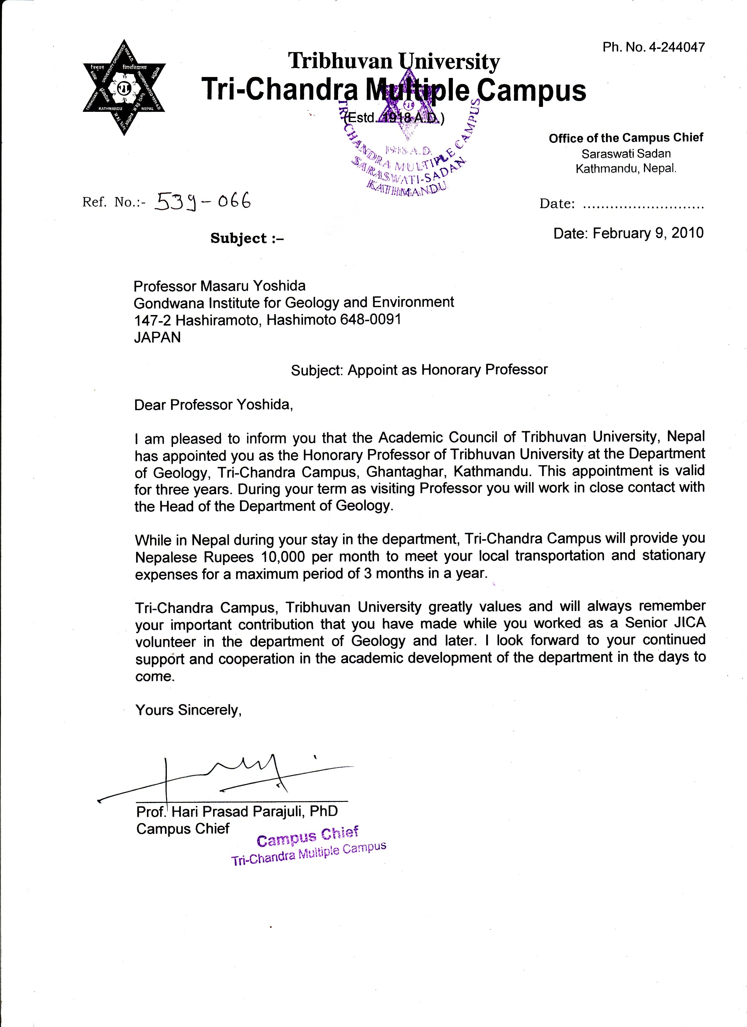 2005.10 Professor, Department of Geology, Trichandra Campus,